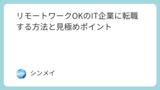 転職・キャリア リモートワークOKのIT企業に転職する方法と見極めポイント エンジニアがリモートワークOKのIT企業に転職するための方法と見極めポイントを徹底解説。求人票や面接で確認すべき点、フルリモート企業の選び方、年収を下げない戦略まで網羅。 2025.12.13 転職・キャリア