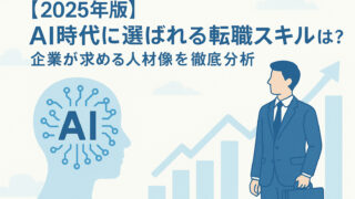 AI・仕事スキル 【2025年版】AI時代に選ばれる転職スキルとは?|企業が求める人材像を徹底分析 AI時代の転職市場では、求められるスキルや人材像が大きく変化しています。本記事では【2025年版】として、企業が評価する思考力・データ活用・AIリテラシーなどのポイントを解説。市場価値を高めたい人に向けた学習ステップも紹介します。 2025.11.04 AI・仕事スキル転職・キャリア