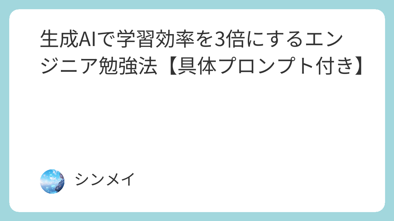 本記事では、生成AIを使ってエンジニアの学習効率を「3倍」に高めるための具体的な勉強法を解説します。単なるツール紹介ではなく、学習設計の考え方から、すぐに使える具体プロンプト、失敗しやすいポイントまでを体系的にまとめています。独学でスキルアップしたい方や、限られた時間で成果を出したい方が、今日から実践できる内容になっています。