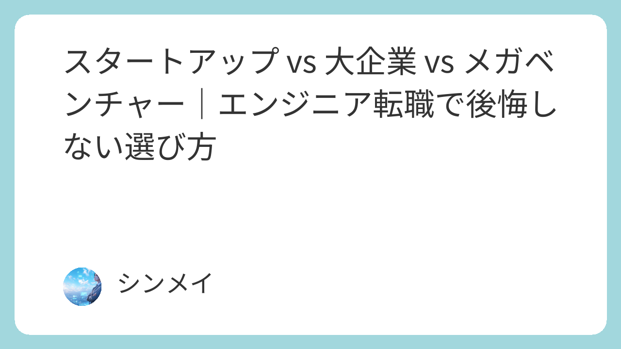 スタートアップ・大企業・メガベンチャーは、それぞれまったく異なる強みと文化を持ち、どれを選ぶべきかはあなたの価値観・キャリア志向・ライフスタイルによって大きく変わります。LinkedIn 2025のデータでは、転職満足度が高いエンジニアの共通点として「企業規模の特徴を理解し、自分に合う環境を明確に選んでいた」ことが挙げられています。