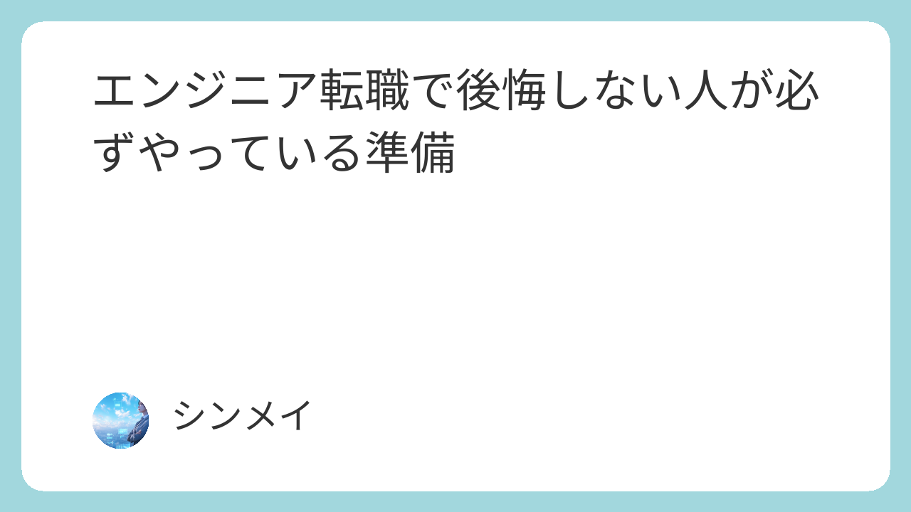エンジニア転職は、キャリアの通過点でありゴールではありません。準備を怠らず、自分の判断軸を持ったうえで選択すれば、転職は「後悔するイベント」ではなく、「納得できる成長の機会」になります。