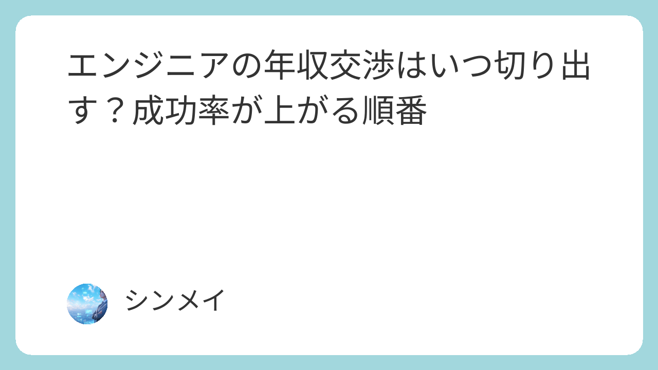 エンジニアの年収交渉は、「交渉するかどうか」よりも「いつ・どの順番で切り出すか」によって結果が大きく変わります。面談初期に焦って金額の話をするのではなく、まずは評価を高め、情報を集め、内定後の条件調整フェーズで交渉することが成功率を高める王道です。